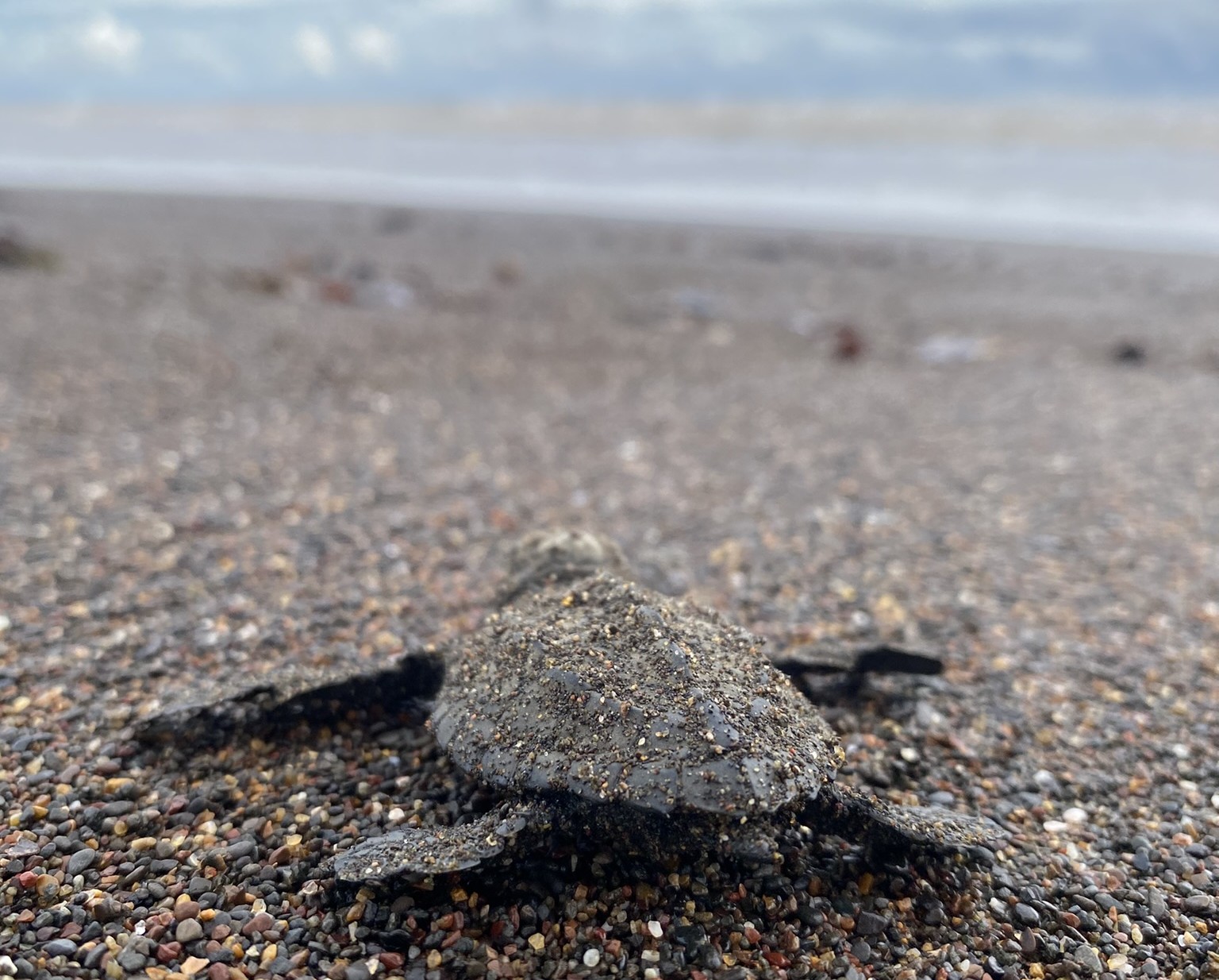 © Neonato de tortuga golfina (Lepidochelys olivacea) rumbo al Pacífico/Save the Blue Five