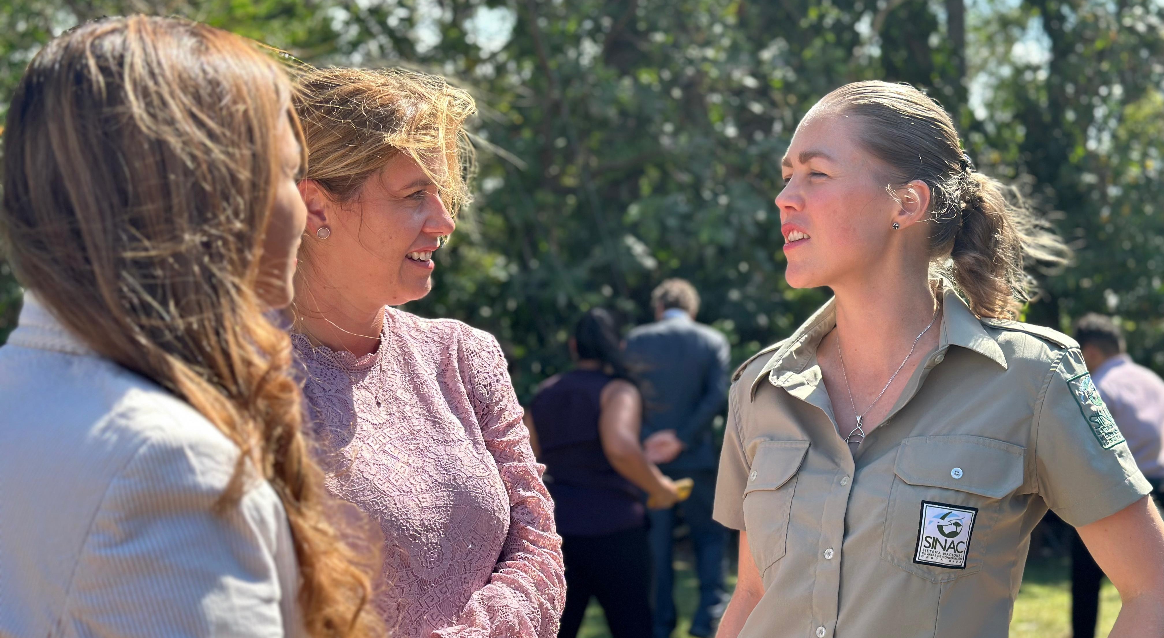 Mujer guardaparque conversando con la representante de la Embajada de Alemania, Alexandra Herr. © ACCIÓN Clima / GIZ Costa Rica